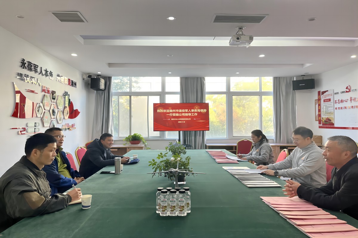 1118日,滁州市退役军人事务局就业安置科等部门领导来我公司对“戎耀皖东”退役军人就业超市运行情况进行考核检查,考核组一行听取了公司负责人汪军关于戎耀皖东就业超市今年以来运行情况的汇报,实地查看了就业超市运行情况的台账资料,对就业超市工作所开展的工作和取得的成绩充分肯定,对下一步发展提出了宝贵的意见和建议。